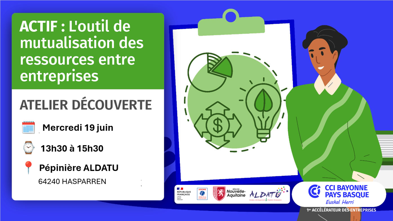 Cet atelier vous présentera la toute dernière version de l'outil de mutualisation et de partage "ACTIF" proposé par la CCI de Bayonne.